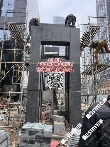 賀州鐘山青火燒面外墻干掛板廣西芝麻黑光面金點綠石材