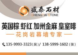 發(fā)布信息: ------福建省南安市盛泰石業(yè)有限公司------ ◆花崗巖幕墻干掛 ★優(yōu)勢品種: ◆中國:蝦紅(自有礦山) ◆巴西:皇室啡/加州金麻/白玫瑰/白世貿(mào)/淺紫點金麻/巴西金麻/大啡珠/細啡珠/加多利/金鉆麻/金山麻/云黑石/紫水晶 ◆印度:英國棕/黑金沙/鐵灰/印度蘭/木瑪麗 ◆安哥拉:安哥拉黑/安哥拉棕/ ◆美國:美國白麻/美國灰麻/沙利士紅 ◆挪威:藍珍珠/銀珠/紅鉆/啡鉆/綠星 業(yè)務聯(lián)系: 13599933323吳 13599200999吳 ?旋轉樓梯放樣設計及施工 ?空心圓柱羅馬柱弧形板 ?實心圓柱欄桿 ?雕刻浮雕花帽 業(yè)務聯(lián)系: 13799222992洪 18359800001余 地址:福建省南安市水頭鎮(zhèn)福山工業(yè)區(qū)盛泰總部