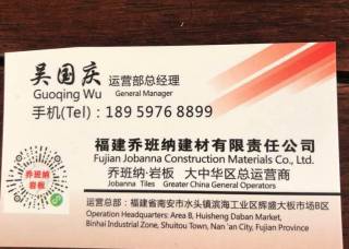 喬班納石業(yè)主營產(chǎn)品:魚肚白(巖板),純白(巖板),黑白根(巖板),爵士白(巖板),莎羅娜(巖板),水泥灰(巖板),雪花白(巖板),阿瑪尼灰(巖板),亞馬遜綠(巖板)企業(yè)地址:福建泉州南安市水頭鎮(zhèn)輝盛大板市場B區(qū)